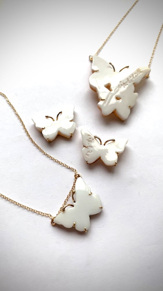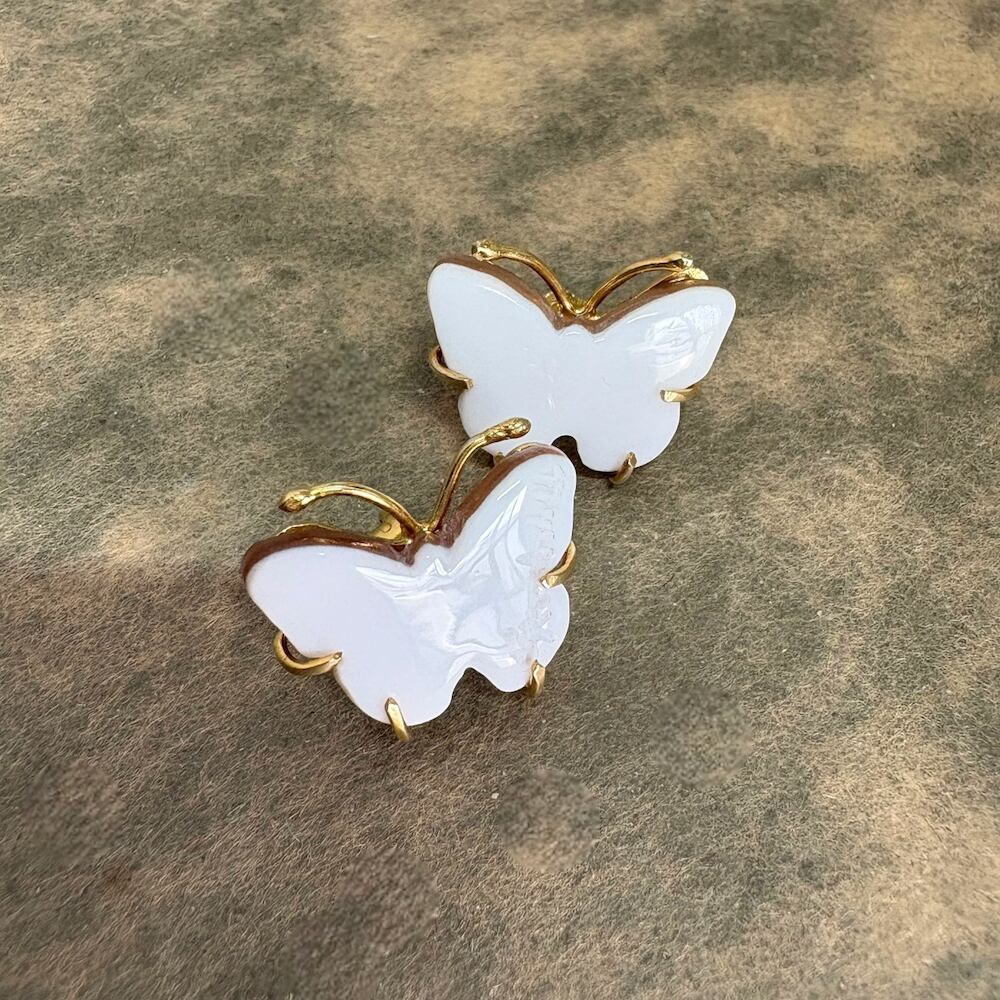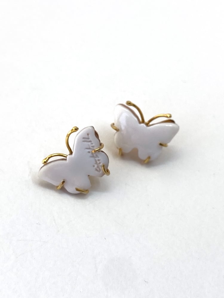 光沢のあるシェルに仕上げた美しい蝶々のピアスです。
